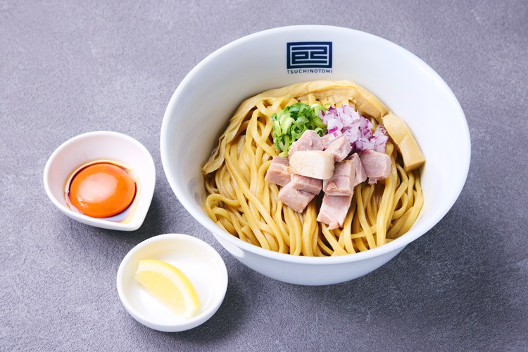 全粒粉入のつけ麺専用の中細麺またはつるつるとした食感が特徴のシルキー麺に【濃厚かつお昆布水】がたっぷりかかっています!まずはそのままわさびと岩塩をつけてとろとろな昆布水と麺の食感、風味をお楽しみ下さい。スープは醤油ときのこ香る塩をお選びください。